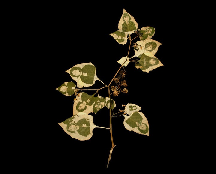 Vietnamese-born photographer and artist Binh Danh has created a body of work using leaves as his canvas. referred to as 'chlorophyll printing', the natural process involves a negative of a photograph being placed over a leaf which is then exposed to sunlight for a period of days. The green pigments of the plant will darken accordingly, resulting in a ghostly and monochrome image that are preserved in a block of resin.